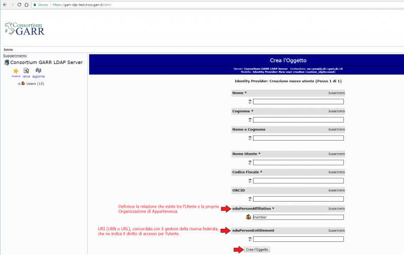 - I valori possibili sono: sn, givenName, cn, displayName, eduPersonAffiliation, schacPersonalUniqueID, mail, eduPersonEntitlement, eduPersonOrcid